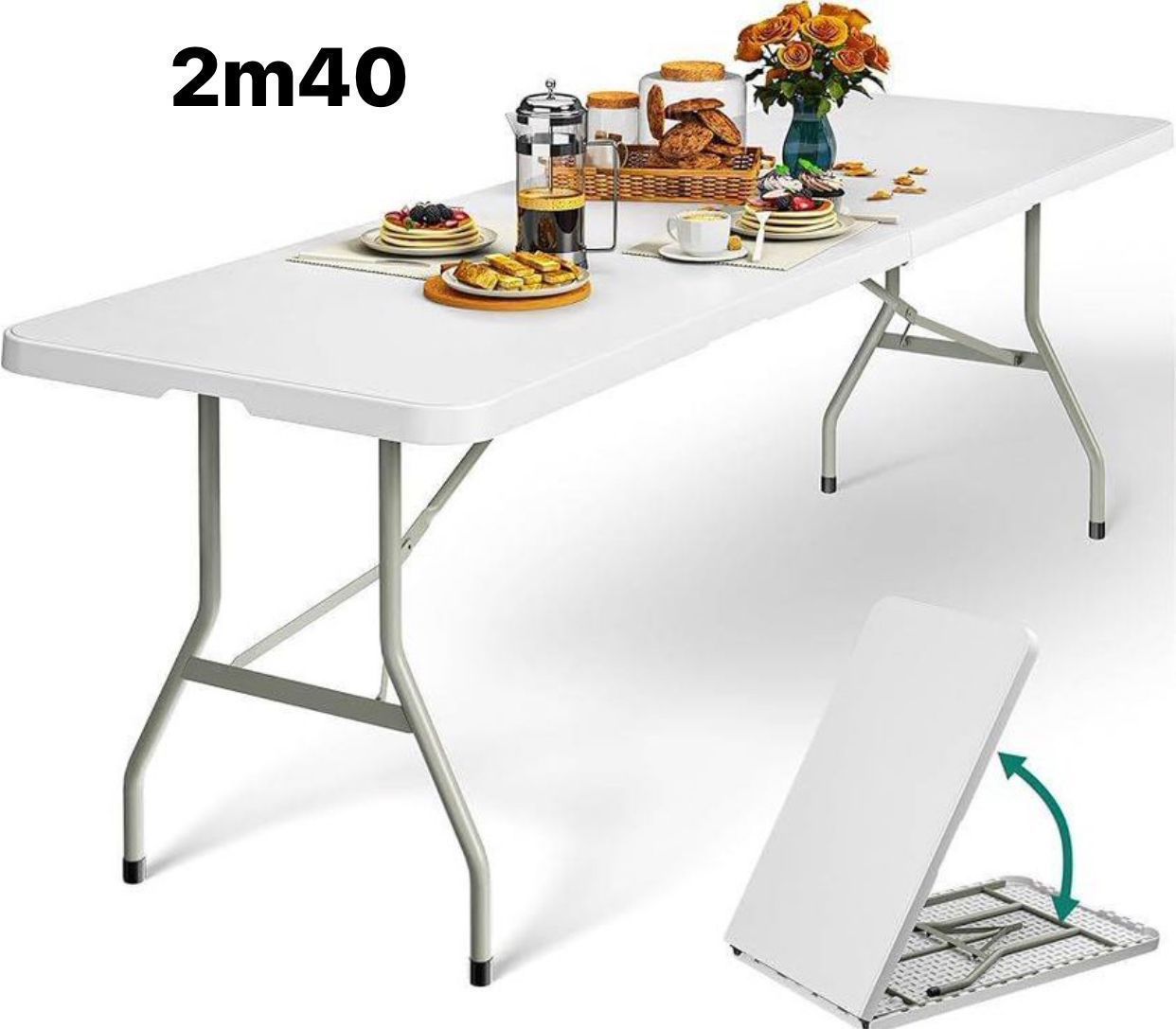 Table de dressage pliable, blanche en matière solide, de longueur 2m40.